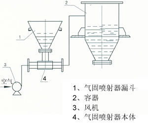 固喷射器它借助有压力的空气输送可流动颗粒材料,使其通过一个漏斗进入喷射器。