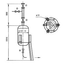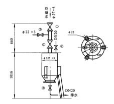 3、当排水器检测时,应先闭阀门②,打开管堵③,插上盲板⑤,放掉冷凝水,即可检修。