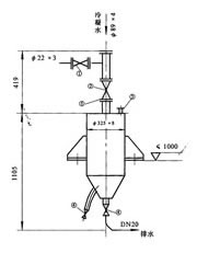 c、打开底阀门④,(如底部阀门堵塞,则打开侧面阀门④),把水放到专用的筒内(冷凝水不必放尽)。